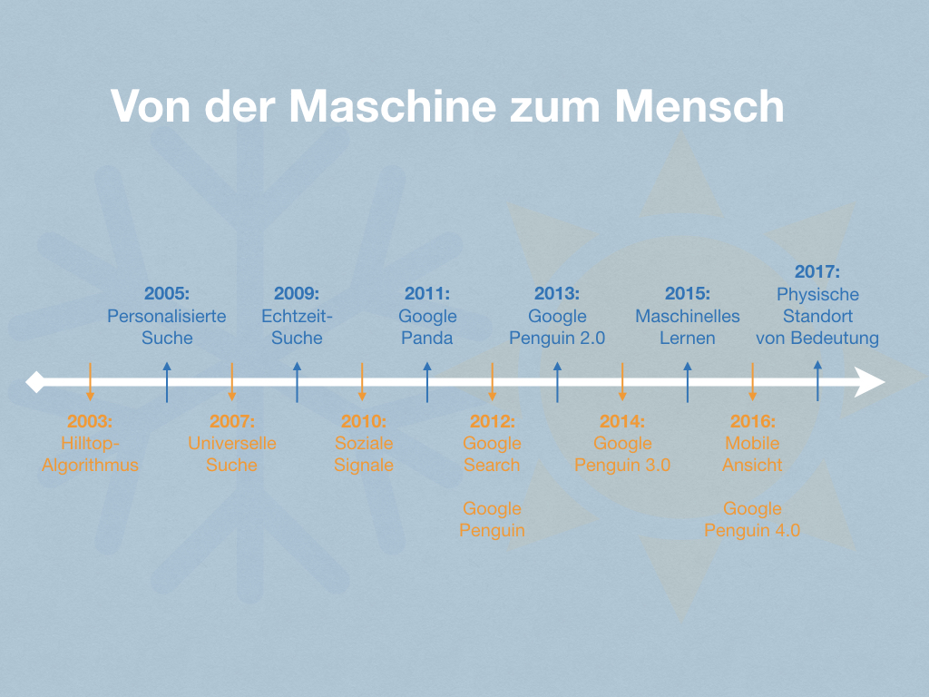 September 2016 - Penguin 4.0 Update: das neue Update ist jetzt in Echtzeit und in den "Kern"-Algorithmus eingebaut.