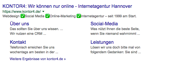 So ist es möglich, durch verschiedene Faktoren dem Nutzer zu zeigen, dass die Suche mit einem Klick auf die Seite befriedigt werden kann.